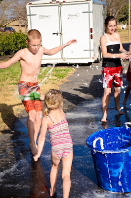 Washing the Car03.02.2012Yes, the kids are washing the car. Yes, they are in their swimsuits, and that is cold hose water. And yes, these pictures were taken yesterday. February.Yes, I love the weather in Oklahoma.